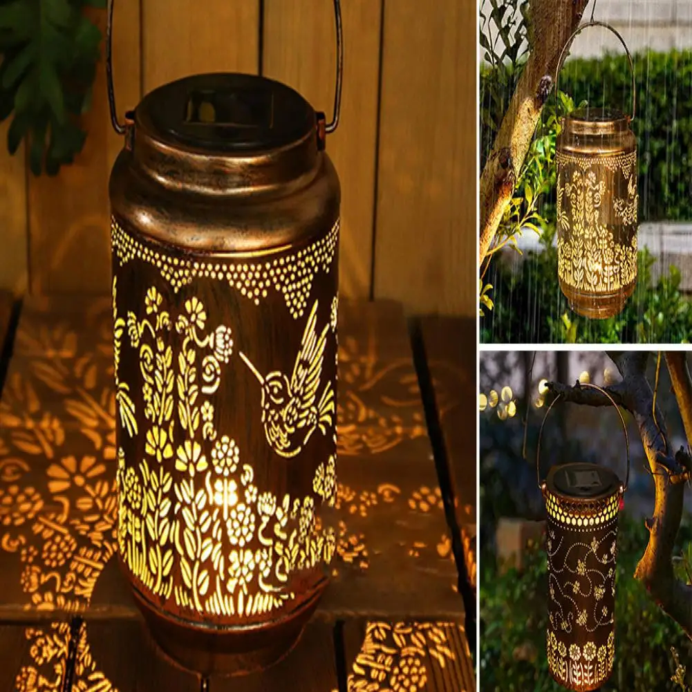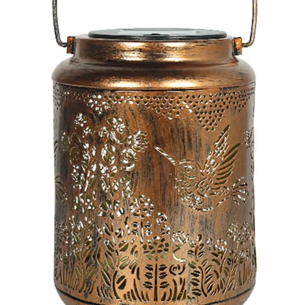 Hollow Metal Finish Solar Lantern Retro Design Solar Lantern Decorative Solar Lantern with Hummingbird for Outdoor for Patio